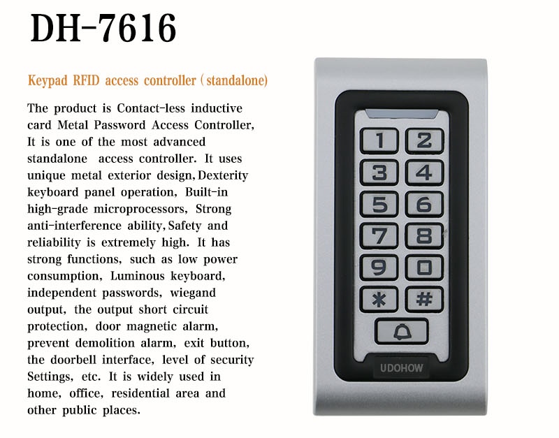 Sistema de Controle de Acesso Leitor RFID Wiegand com Teclado Touch Standalone DH7616